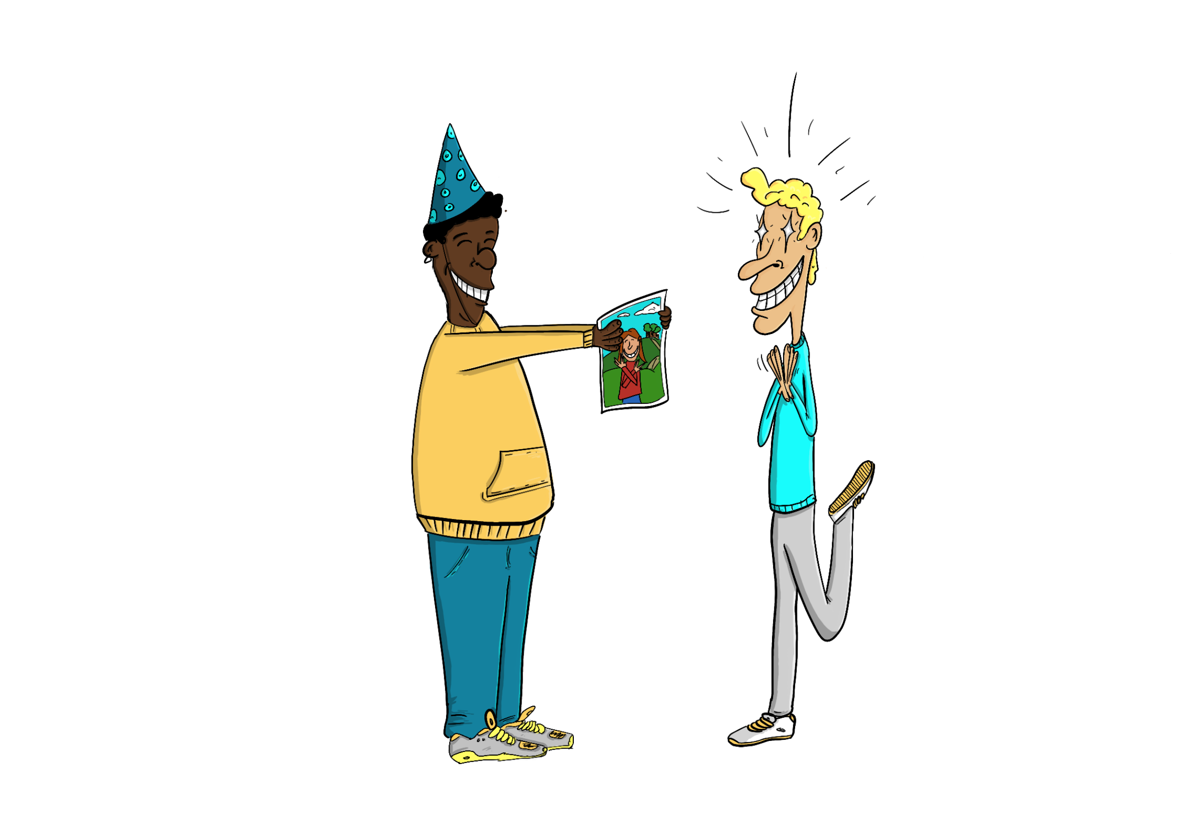 Tu n’attends qu’une seule chose : c’est de voir le résultat final et nous te comprenons ! Ta bande dessinée te sera envoyée au format PDF et tu pourras l’imprimer autant de fois que tu veux. Tu es super content.e de ton cadeau et tu décides de nous écrire un super commentaire.
